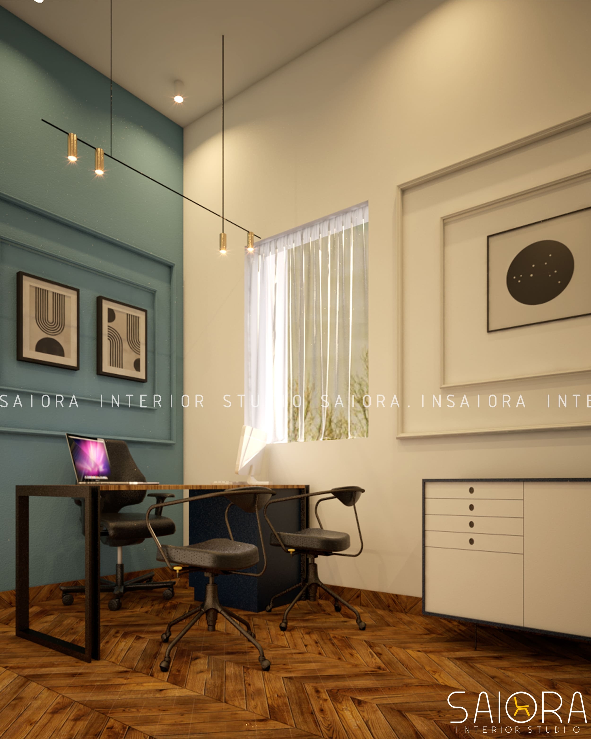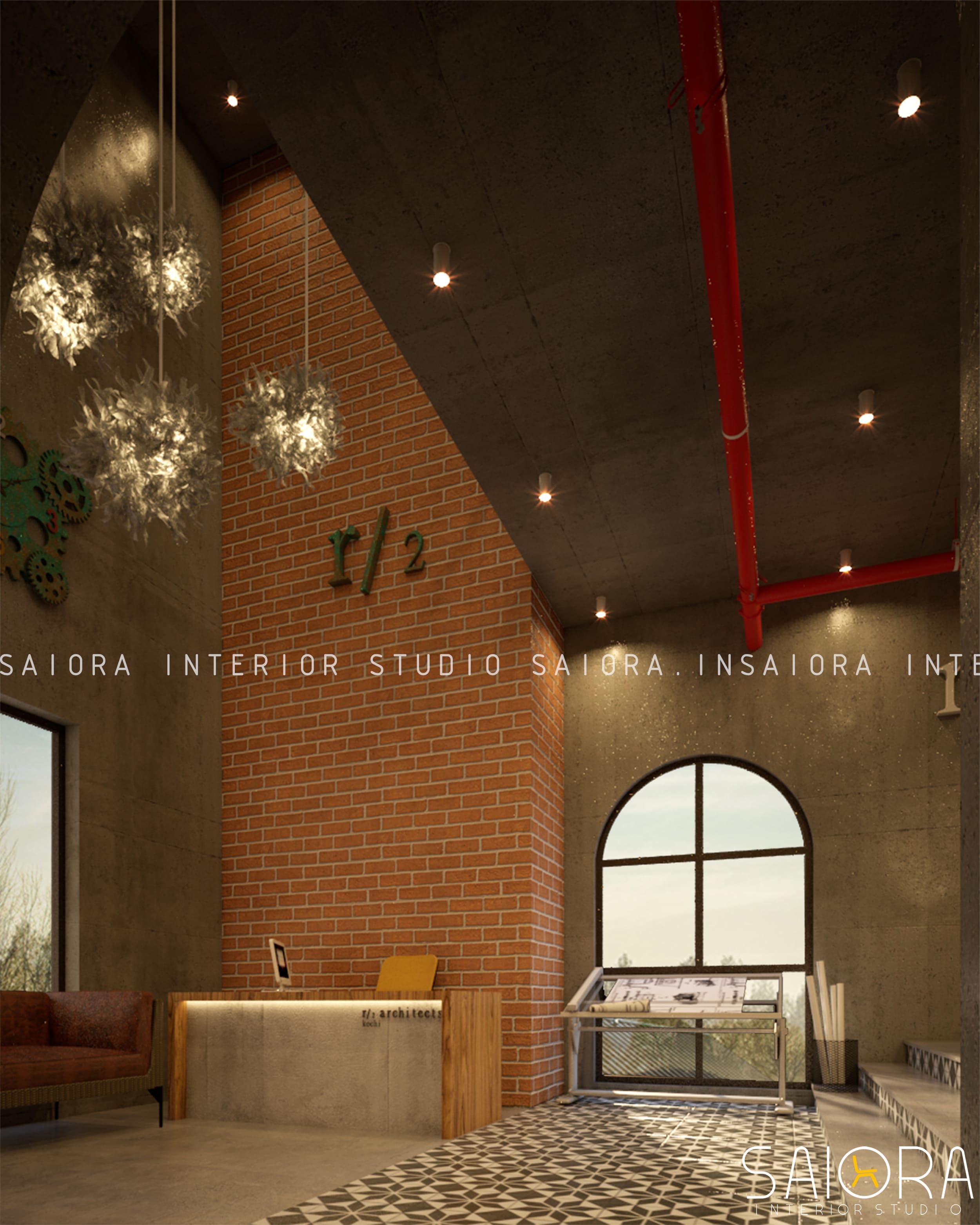 This 1650 sq.ft. office space design envisioned by Studio Saiora explores the potential of blending exposed industrial aesthetics with timeless classical interiors—ideal for dynamic workspaces in Kerala. Designed for a commercial space in Vyttila, Kochi, the layout separates public-facing zones and private work areas with intention: raw, exposed finishes define the reception, client lounges, and corridors, while executive cabins and workstations adopt a warmer, more classical palette. This concept demonstrates how thoughtful material play and zoning can elevate the functionality and visual identity of a workspace. At Studio Saiora, we create distinctive office interior ideas for businesses in Kochi, Ernakulam, and across Kerala, offering fresh, adaptable solutions for both new builds and office renovations.