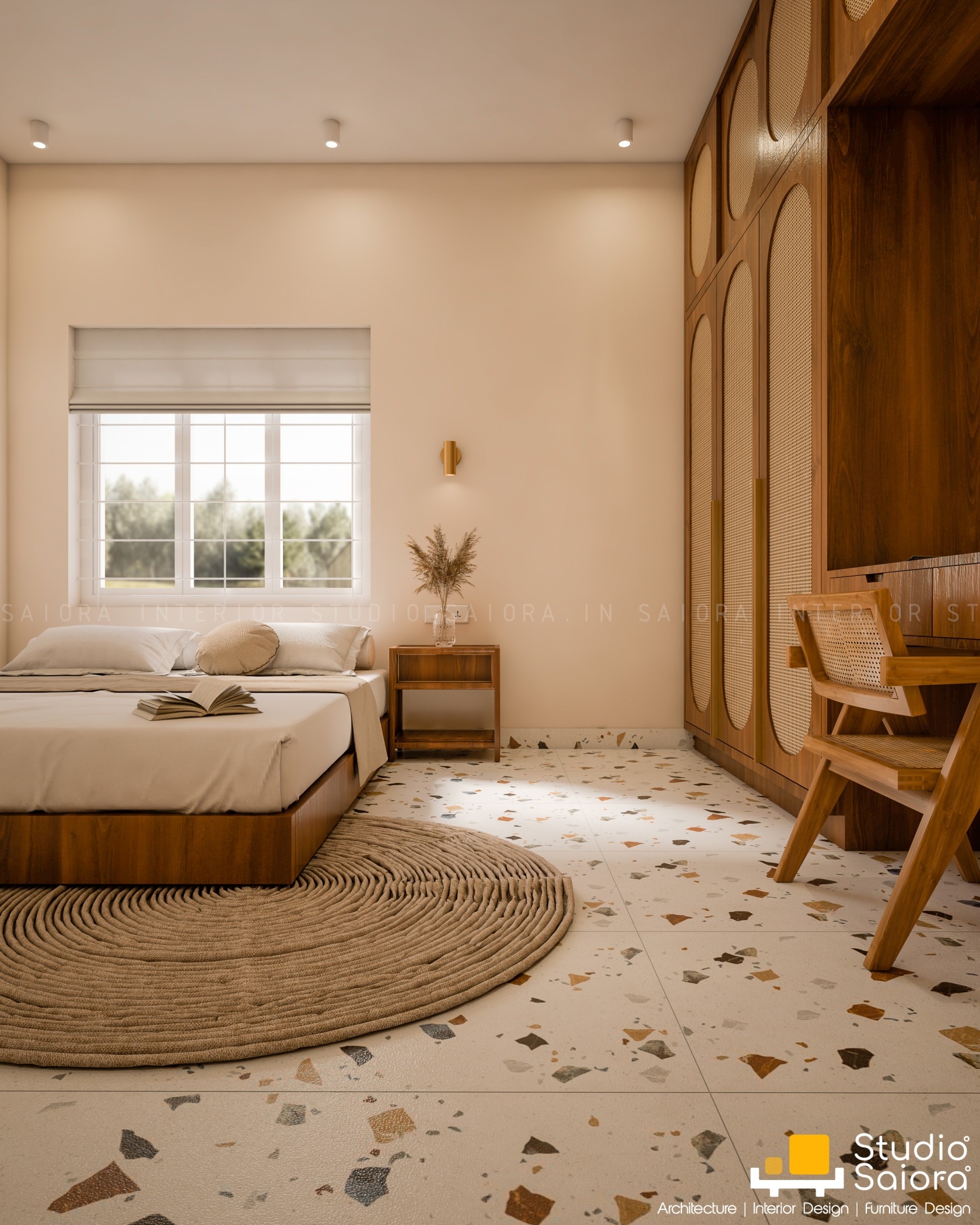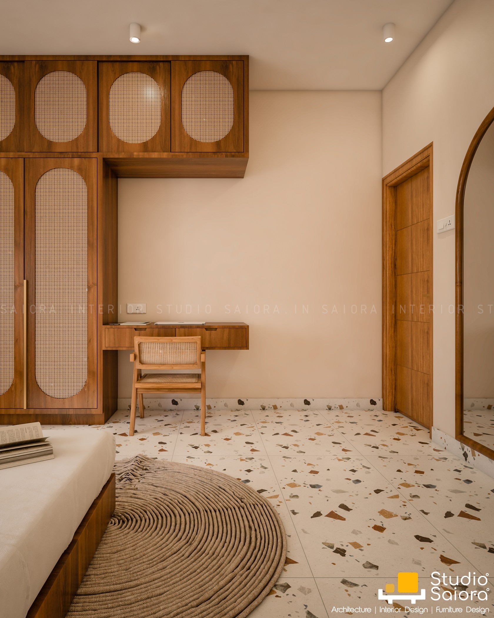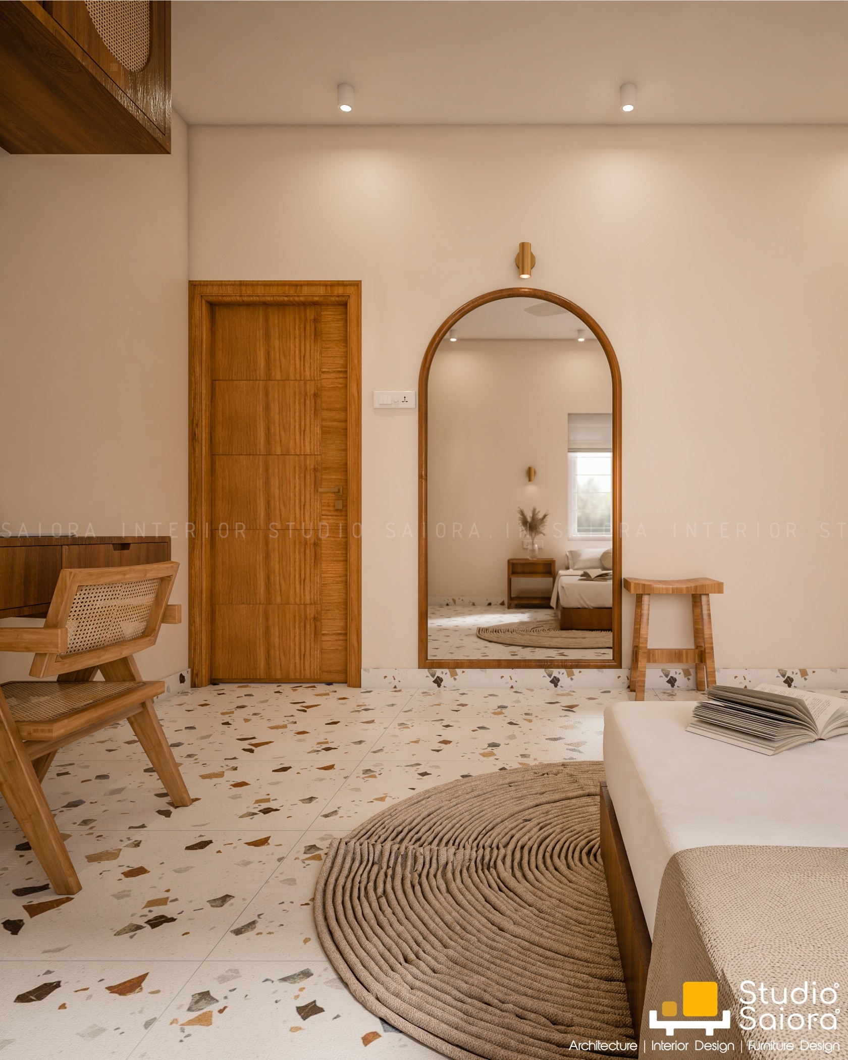 Studio Saiora designed this 12x13 ft. bridal room renovation in Aluva, Kerala, as a perfect blend of comfort, minimalism, and thoughtful design. Created for a bride preparing for her new journey, the space embraces a calm, Hygge-inspired style with soft pastel walls, custom cane furniture, and brass-finished lighting to evoke warmth and elegance. Despite the compact size and budget constraints, the room was transformed into a serene, functional bridal retreat—ideal for modern brides seeking minimalist yet soulful interiors. Every corner reflects a balance of artistic expression and practical living. As one of the best interior design firms in Kerala for small space and bridal room interiors, Studio Saiora specializes in personalized room makeovers, budget-friendly home renovations, and elegant bridal room designs in Kochi, Ernakulam, Aluva, and beyond.