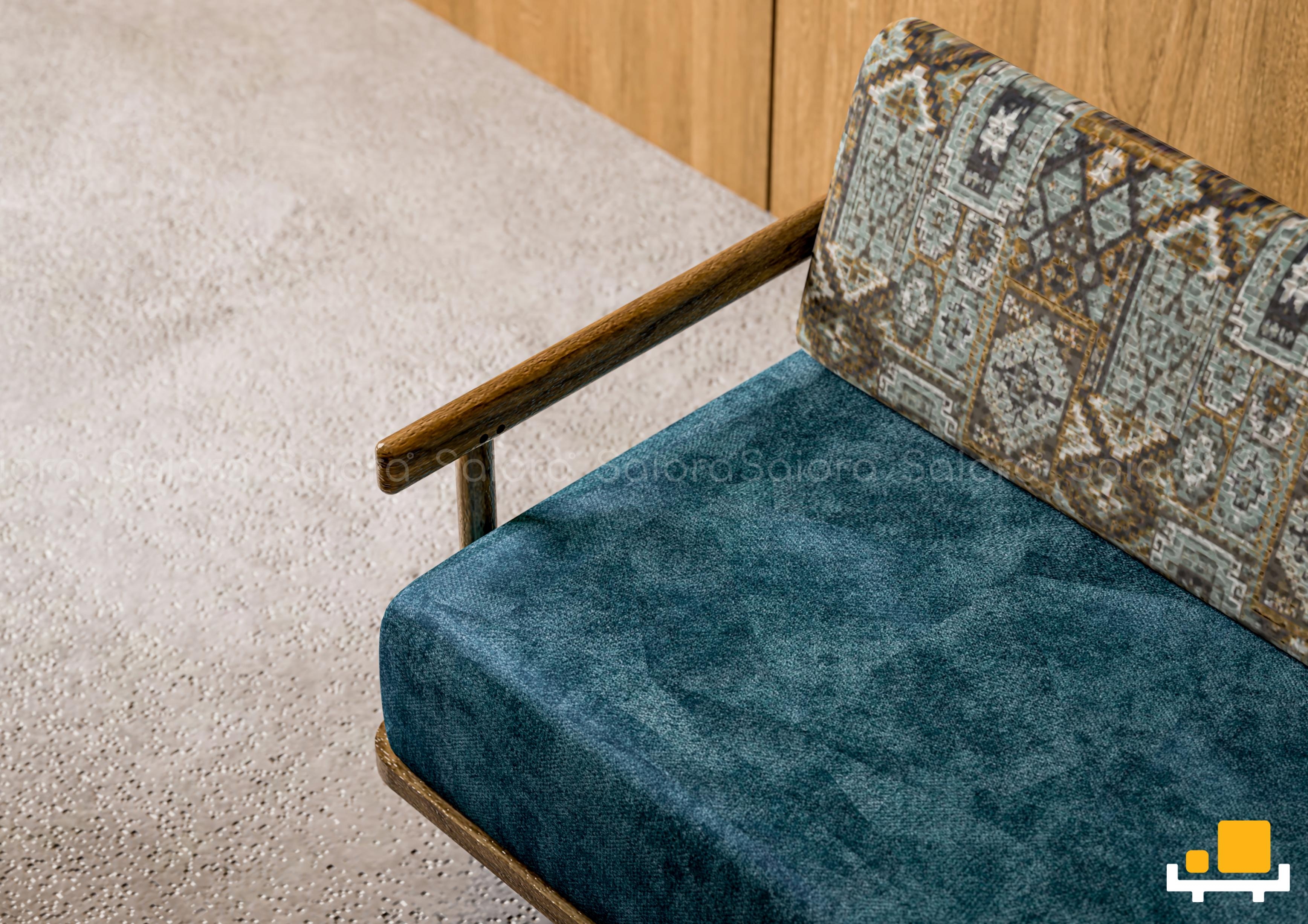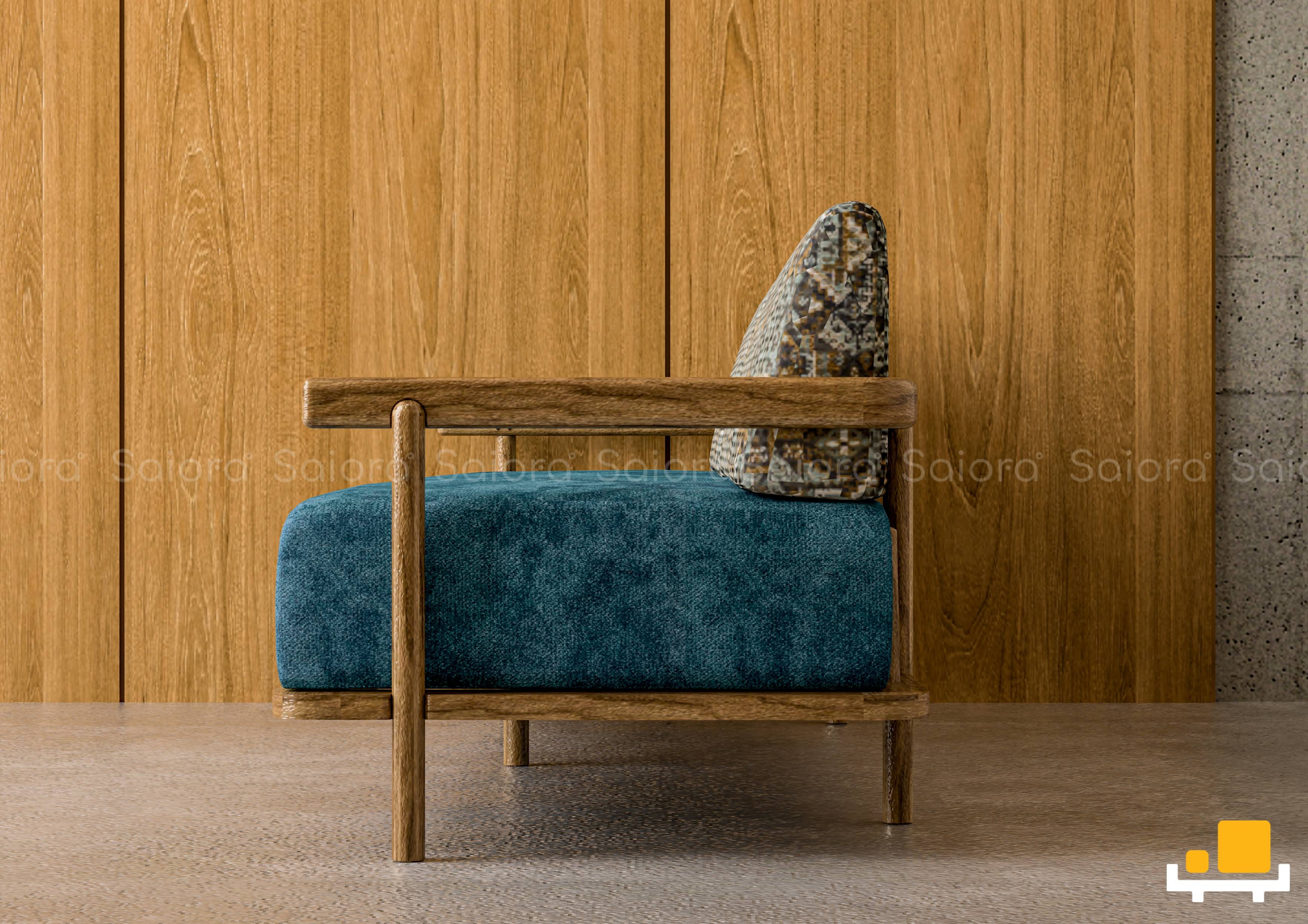The Tangara Sofa celebrates the beauty of ethnic artistry through its patterned jacquard backrest paired with the calm elegance of a teal textured seat. Crafted in solid teak wood, its clean lines and earthy palette bring warmth and depth to any living space. Designed for comfort and character, Tangara is more than seating — it’s a statement of heritage in modern form.